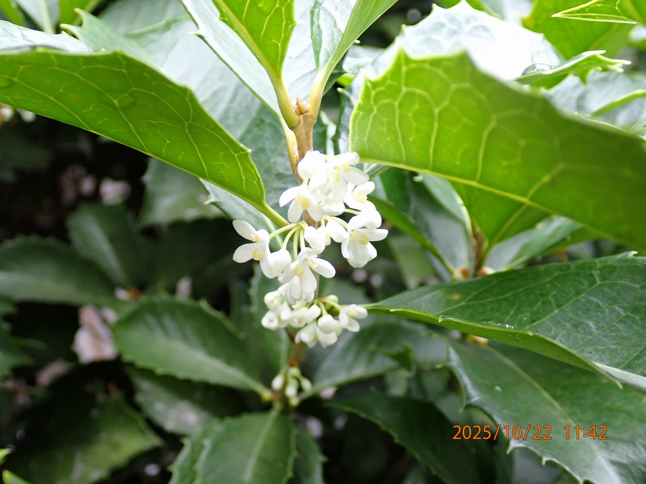 2025年11月3日 / 最終更新日時 : 2025年11月9日 MiyagawaNaoto 樹木図鑑 ヒイラギモクセイに白い花 キンモクセイに少し遅れて、キンモクセイの花に似たヒイラギモクセイの純白の花が咲き始めました。香りはキンモクセイには敵いませんが。 参考 樹木図鑑 ヒイラギモクセイ コメントを残す コメントをキャンセルメールアドレスが公開されることはありません。 ※ が付いている欄は必須項目ですコメント ※ 名前 ※ メール ※ サイト 次回のコメントで使用するためブラウザーに自分の名前、メールアドレス、サイトを保存する。 Δ