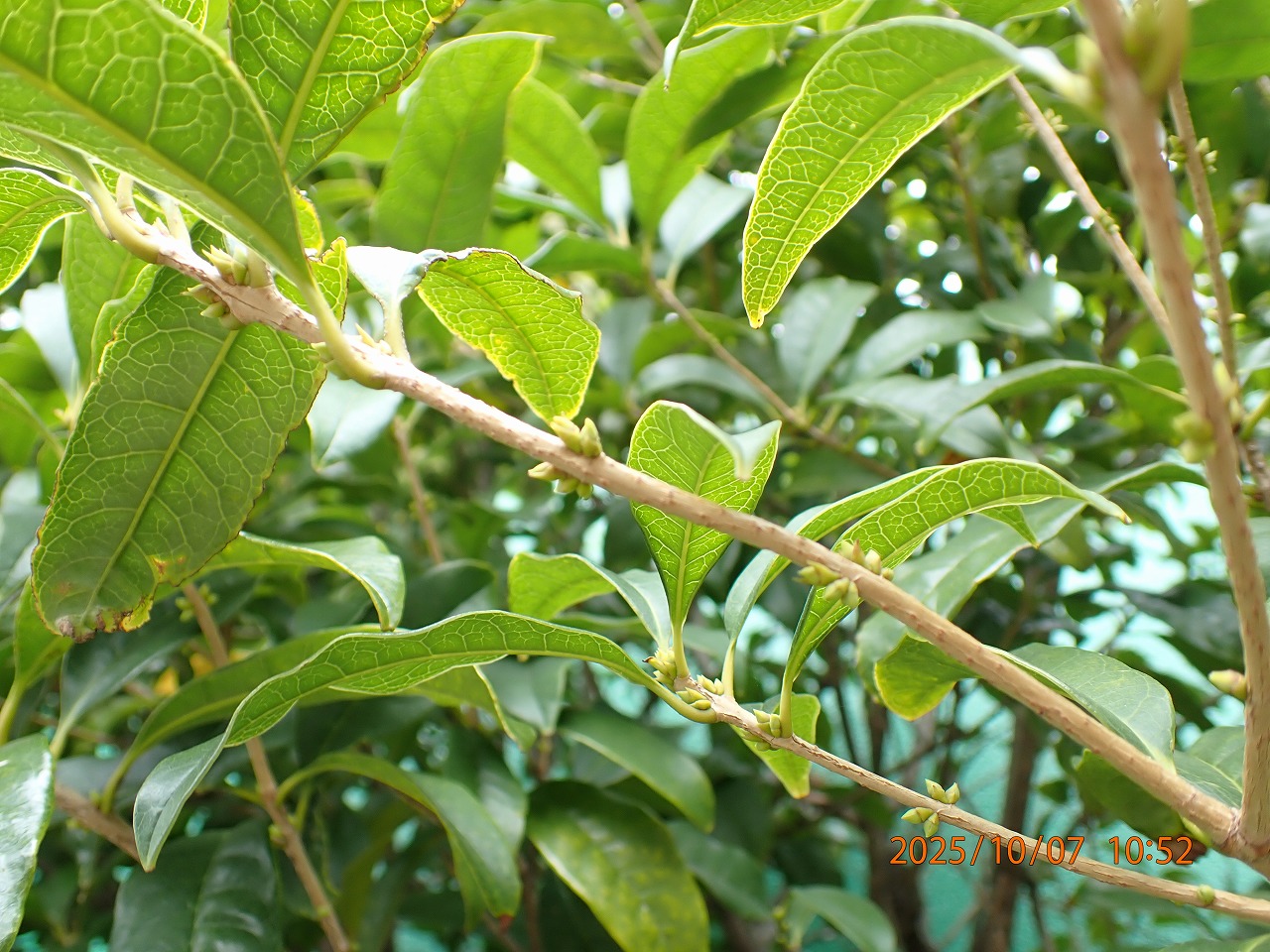 2025年10月14日 / 最終更新日時 : 2025年10月9日 MiyagawaNaoto 樹木図鑑 今年は遅い 例年だと今頃には満開になっているのだが、今年のキンモクセイは遅い。まだ、細い枝に小さな蕾になる手前の芽が見える。花が咲くまでにはまだ時間がかかりそうだ。22年には10月初旬・中旬と2度咲いたこともある。 参考 樹木図鑑 キンモクセイ コメントを残す コメントをキャンセルメールアドレスが公開されることはありません。 ※ が付いている欄は必須項目ですコメント ※ 名前 ※ メール ※ サイト 次回のコメントで使用するためブラウザーに自分の名前、メールアドレス、サイトを保存する。 Δ