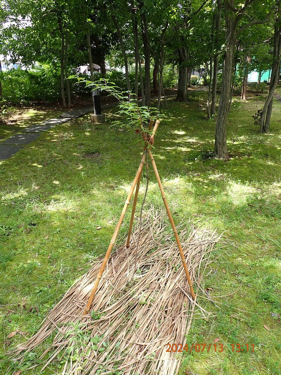 2024年7月14日 / 最終更新日時 : 2024年7月13日 MiyagawaNaoto クマノザクラ クマノザクラのその後 2株あるクマノザクラだが、植えてある場所でやはり成長に若干の差がでている。3号棟西側のものに比べ、2号棟南側のものはすくすく育っている。いずれも有志の方が根元にマルチングをしたり、支柱をして見守ってくれている。来年はちょっと無理でも、再来年には花をつけてくれるだろうか、期待したい。 2号棟南側 3号棟西側 コメントを残す コメントをキャンセルメールアドレスが公開されることはありません。 ※ が付いている欄は必須項目ですコメント ※ 名前 ※ メール ※ サイト 次回のコメントで使用するためブラウザーに自分の名前、メールアドレス、サイトを保存する。 Δ