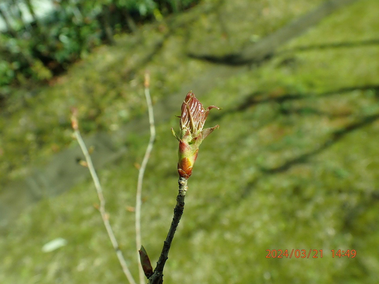 まだ若木なので花が咲くのは来年以降になるか。新芽が伸び始めている。